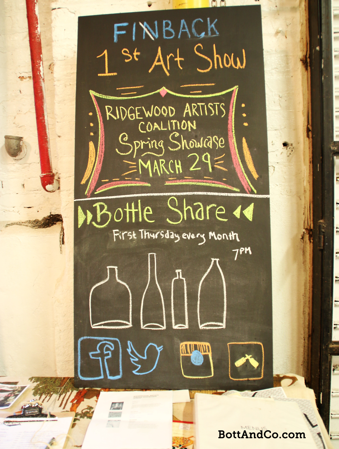 Finback Brewery’s first Art Show, hosted Sunday, March 29 2015 highlights local artists from Ridgewood as well as tasty beer.